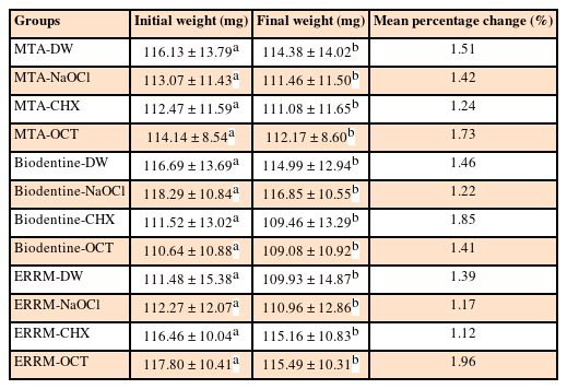 Table 1 Solubility of calcium silicate-based cements in irrigation solutions