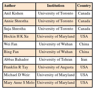 Table 2 The top 10 leading authors contributed to the nanoparticle-based research in endodontics with institutions and countries