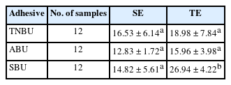 Table 2.Two-way analysis of variance for the effects of adhesive system and etching mode on micro-shear bond strength