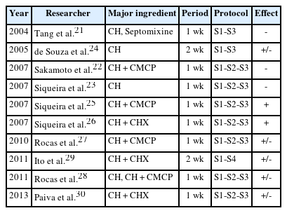 2007Vianna et al.19CH, CHX, CH+CHX1 wkS1-S2-S3-