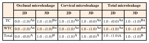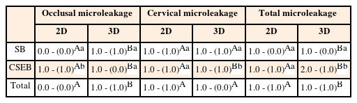 Research Article Marginal microleakage of cervical composite resin restorations bonded using etch-and-rinse and self-etch adhesives: two dimensional vs. three dimensional methods