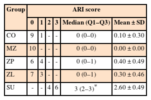 MZ 10 - - - 0 (0–0) 0.00 ± 0.00